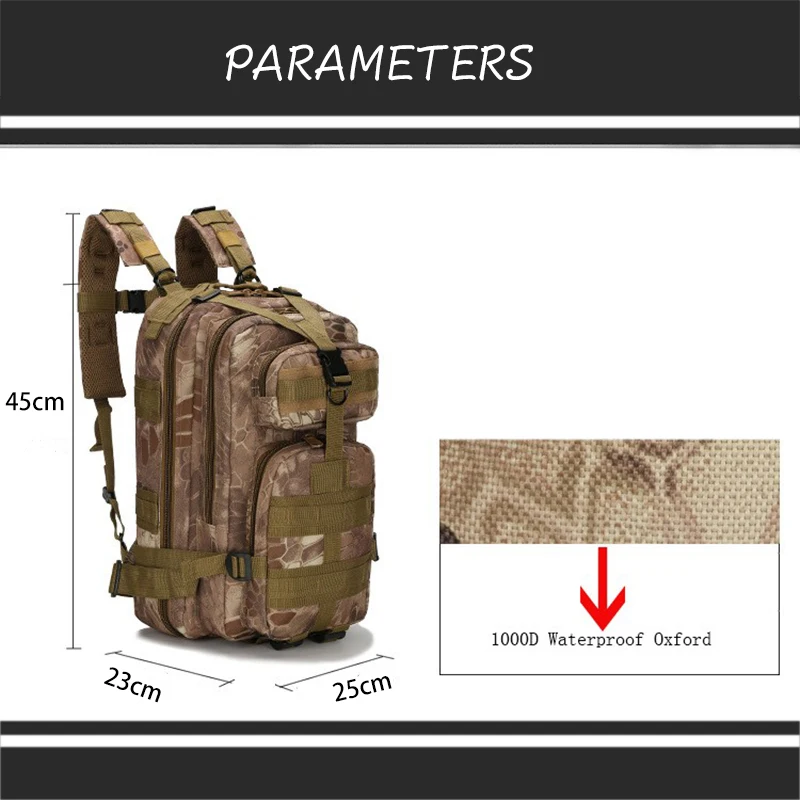 Мужской рюкзак объемом 25 л, спортивные военные сумки, уличный военный тактический карманный многофункциональный водонепроницаемый рюкзак для походов и кемпинга