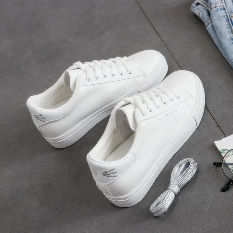 Женские кроссовки на высокой платформе, белые, дышащие, повседневные, AD164