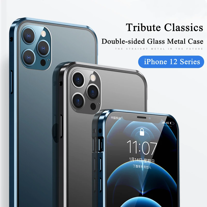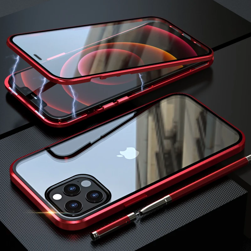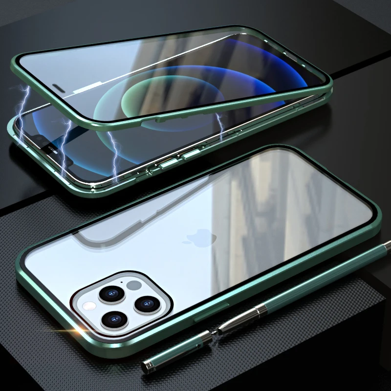 Полностью магнитный металлический чехол для телефона Apple iPhone 12, 11 Pro, XR, XS Max, 7, 8 Plus, бампер HD, двухсторонний чехол из закаленного стекла, 360