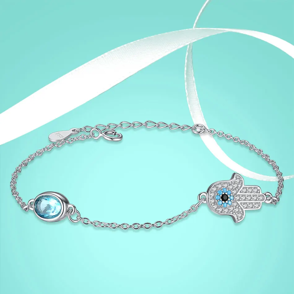 925 стерлингового серебра браслет Хамса рука Фатимы кристаллы повез...