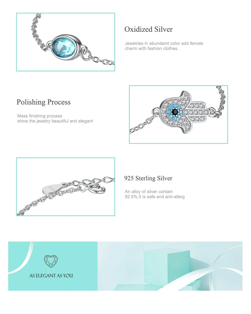 Подлинное 925 пробы серебряные Роскошные Лаки ручной сглаза блестящ...