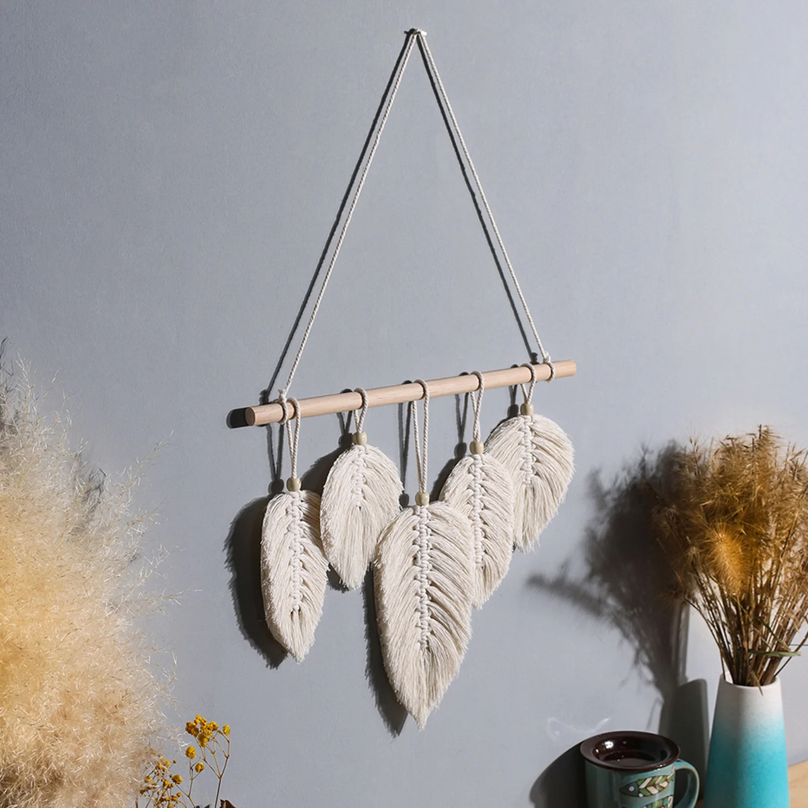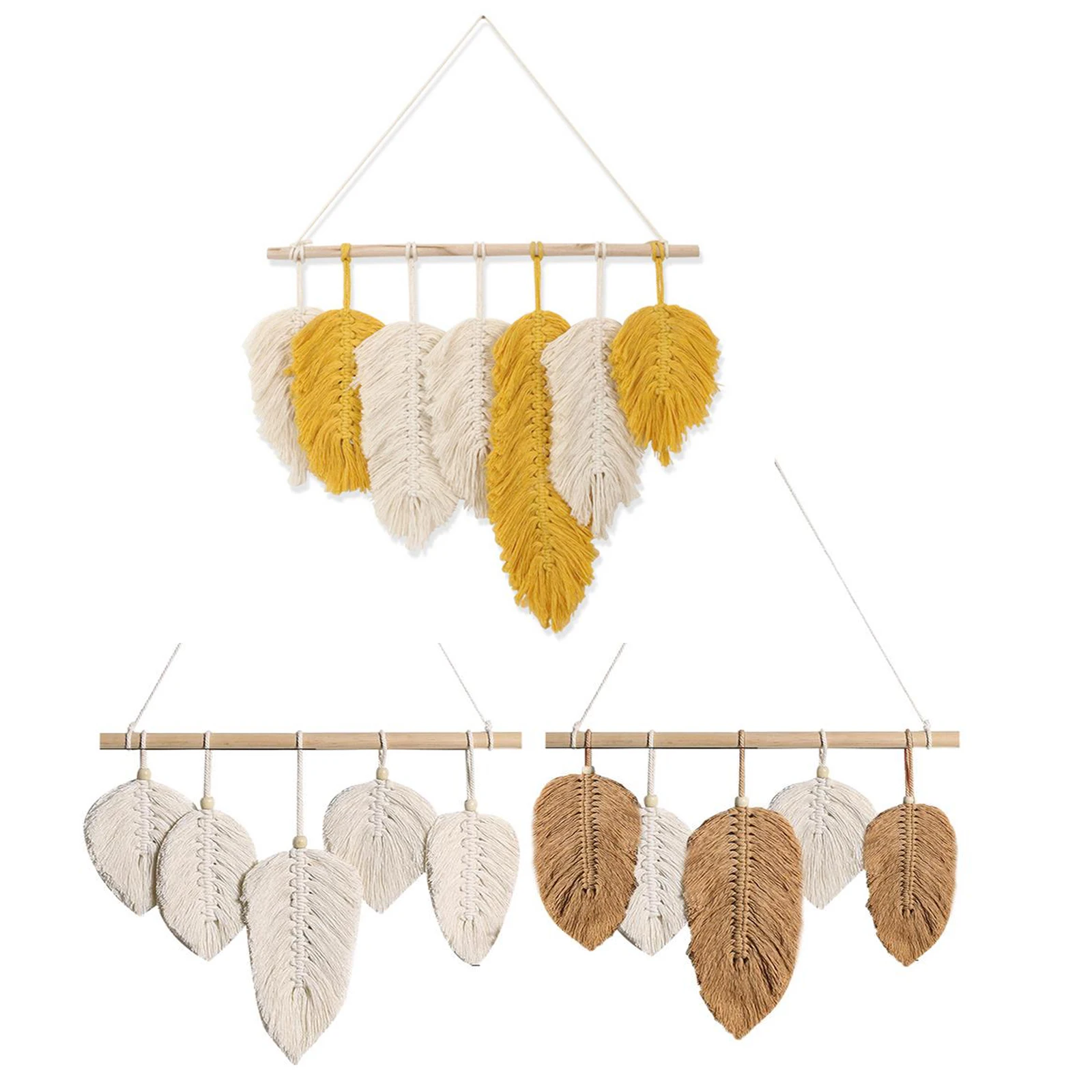 Макраме Настенное подвесное перо хлопчатобумажные тканые листья для...