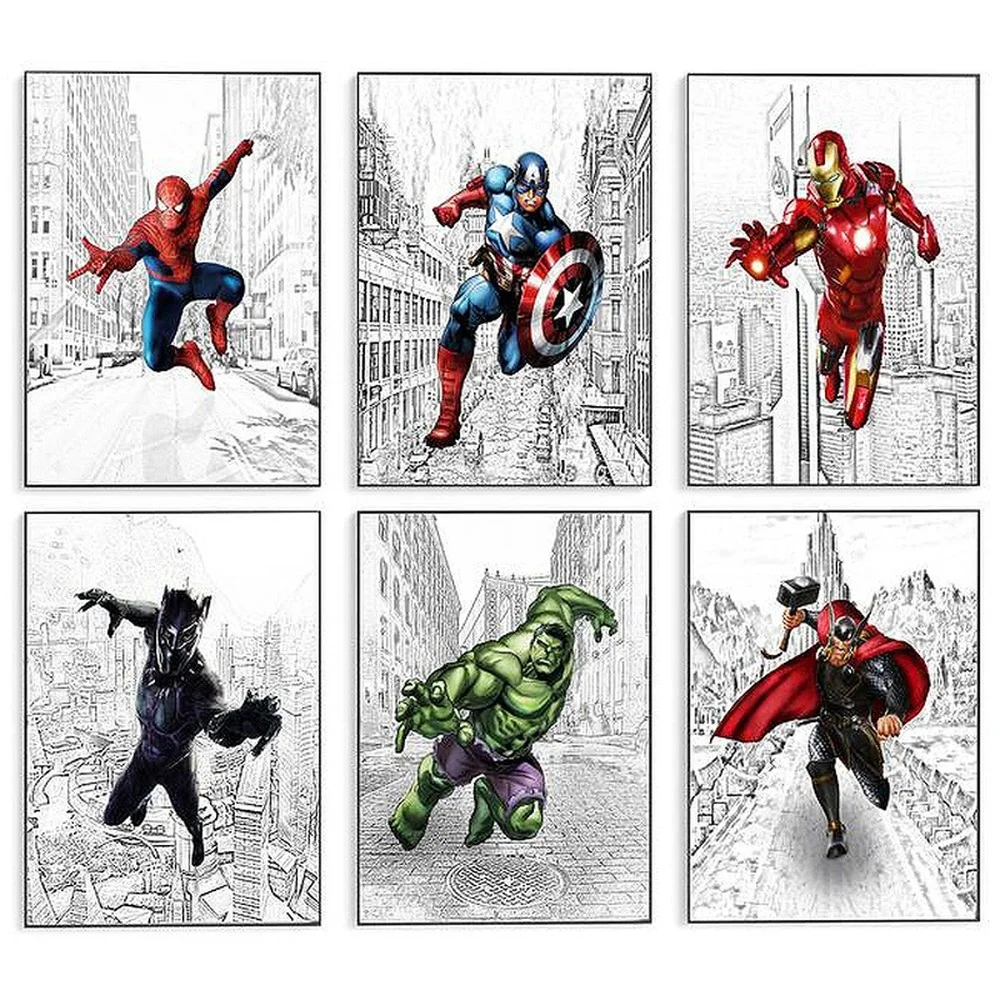Картина на холсте из мультфильма Marvel, мстители, Капитан Америка, Железный человек, Халк
