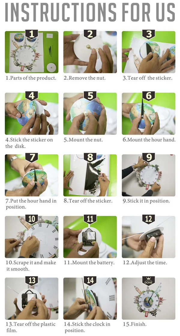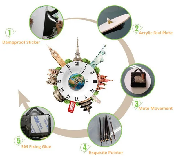 DIY 3D настенные наклейки часы мир Земля настенные часы наклейки 3D настенные часы