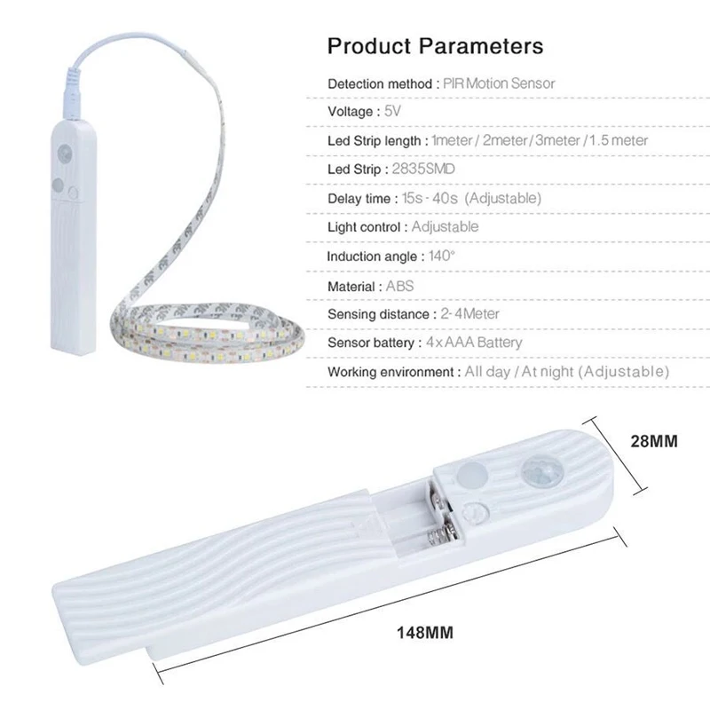 5V 2835 Светодиодный индукции Крытый шкаф светильник строка 1m 2m 3mDC Батарея Box Smart индукционный светильник ing полосы лестница лампа
