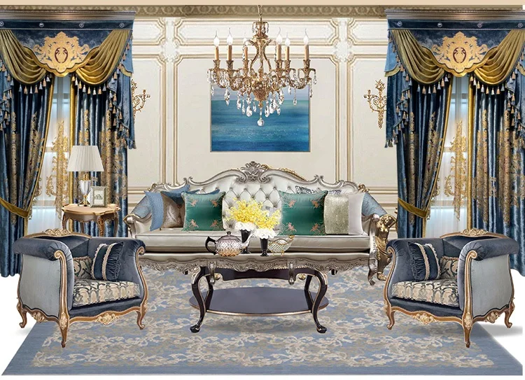 Занавески для гостиной в европейском стиле, роскошные, шелковые, фланелевые, синие, Роскошные, для виллы, спальни, затенение на заказ
