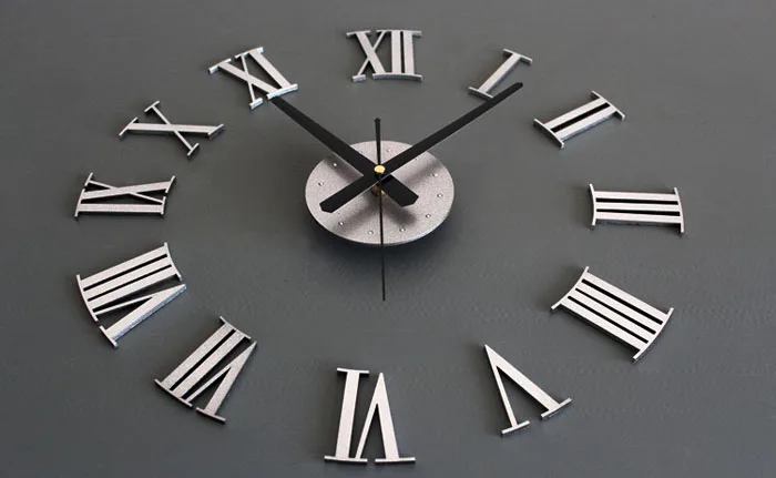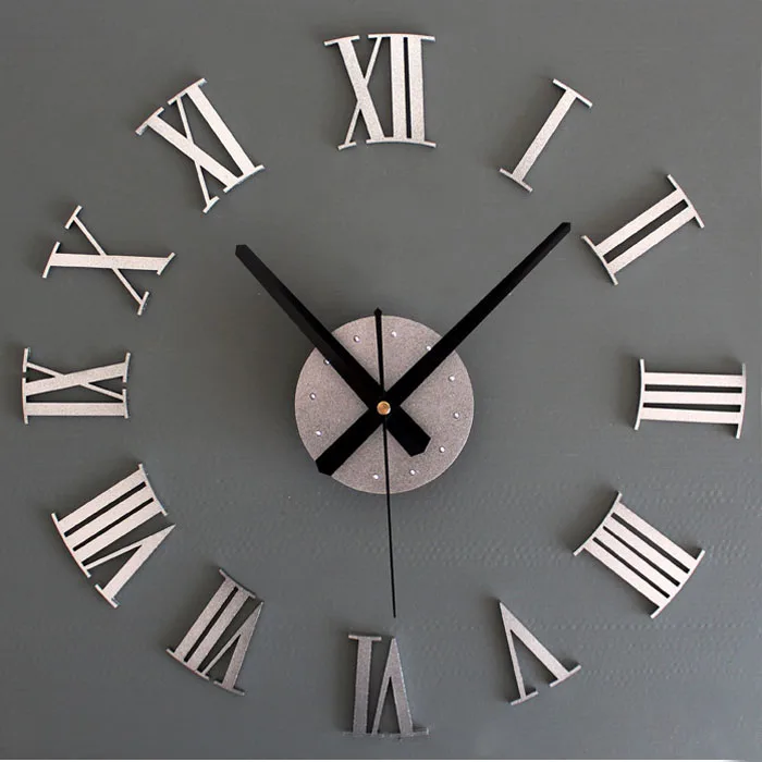 DIY Роскошные 3D настенные часы большие Размер украшения дома художественные часы серебро