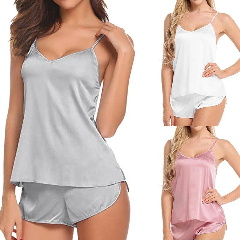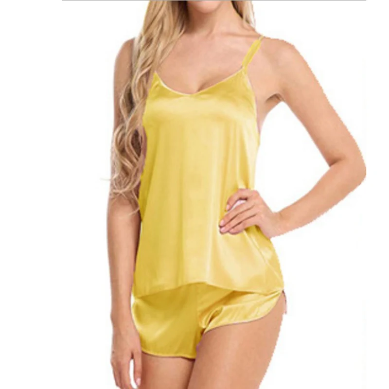 Женский Атласный пижамный комплект, без рукавов, на бретелях