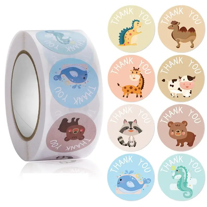 500 шт. милые животные спасибо наклейков для вашего заказа малого бизнеса, упаковка, на день рождения, вечерние свадебные сувениры Счастливого Рождества, свадьбы