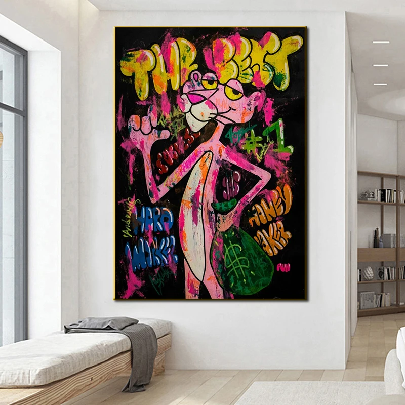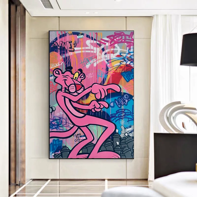 Картина на холсте с изображением розовой Пантеры граффити красочные плакаты и принты картины настенные картины для гостиной домашний декор