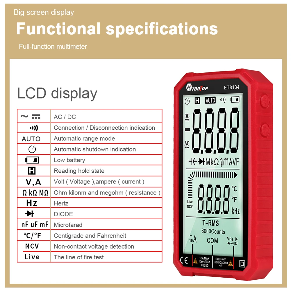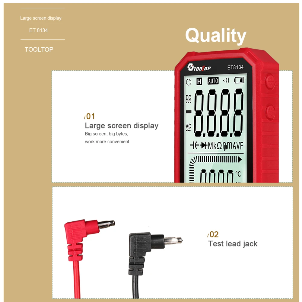 Цифровой мультиметр ET8134, 6000 отсчетов, ЖК-дисплей, автоматический диапазон, Омметр переменногопостоянного тока, тестер, измеритель, полноэкранный мультиметр с сигналом потери цвета