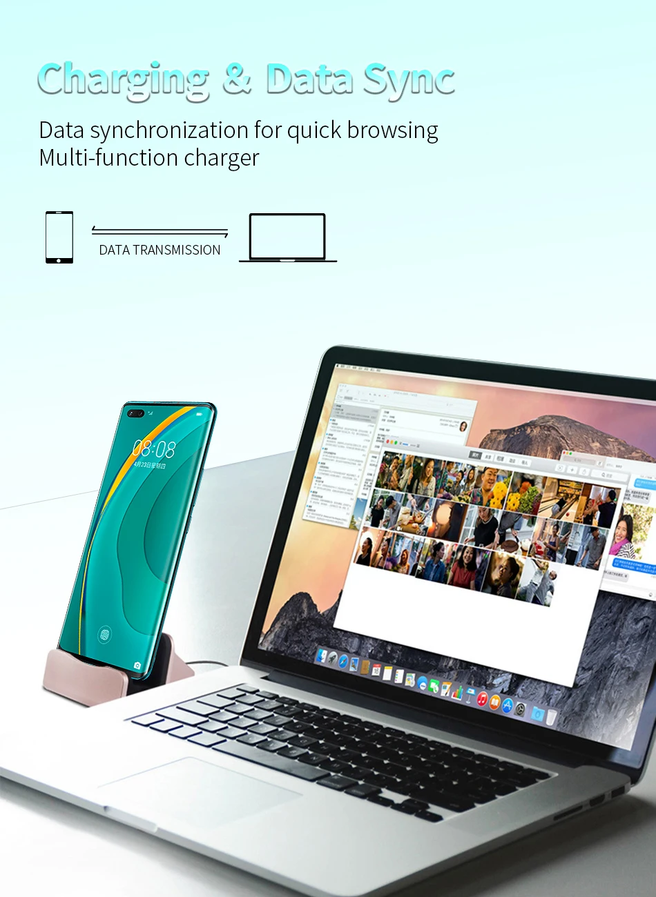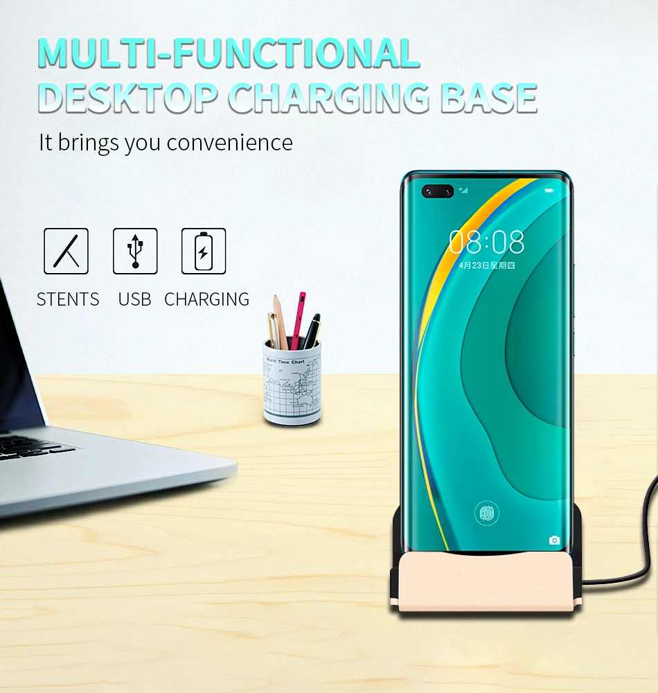 Настольная док-станция, зарядный кабель, док-станция для синхронизации данных, Зарядная база для iPhone 12, Android, Тип C, быстрое зарядное устройство с USB-держателем