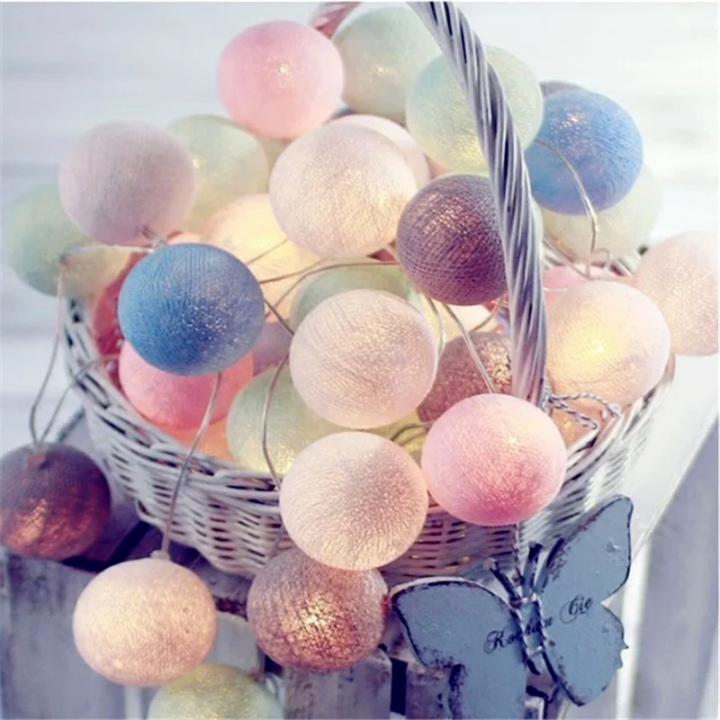 Гирлянда с хлопковыми шариками, сказочные садовые рождественские гирлянды, уличное украшение для сада, уличное свадебное украшение, светодиодная гирлянда