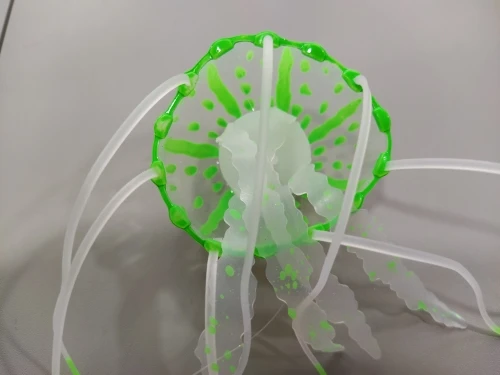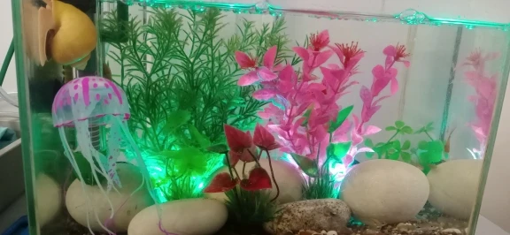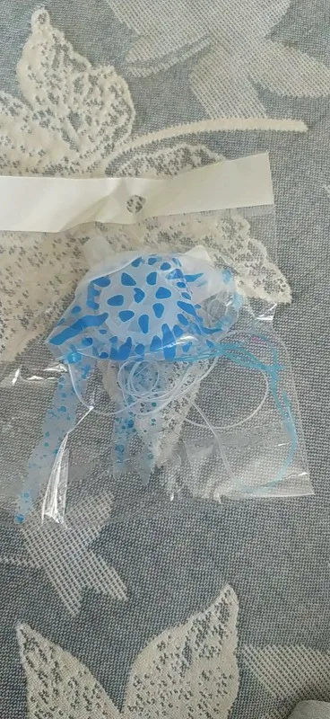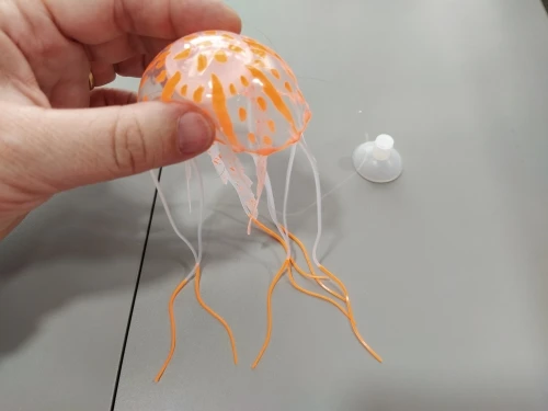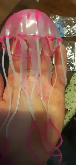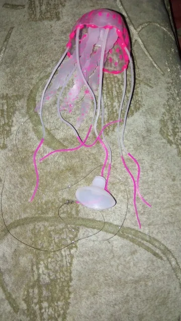 Медуза воняет резиной, не светится, как заявленно. вымачивала в воде, потом только в аквариум. Совпадение или нет, сдохла рыбка одна.
