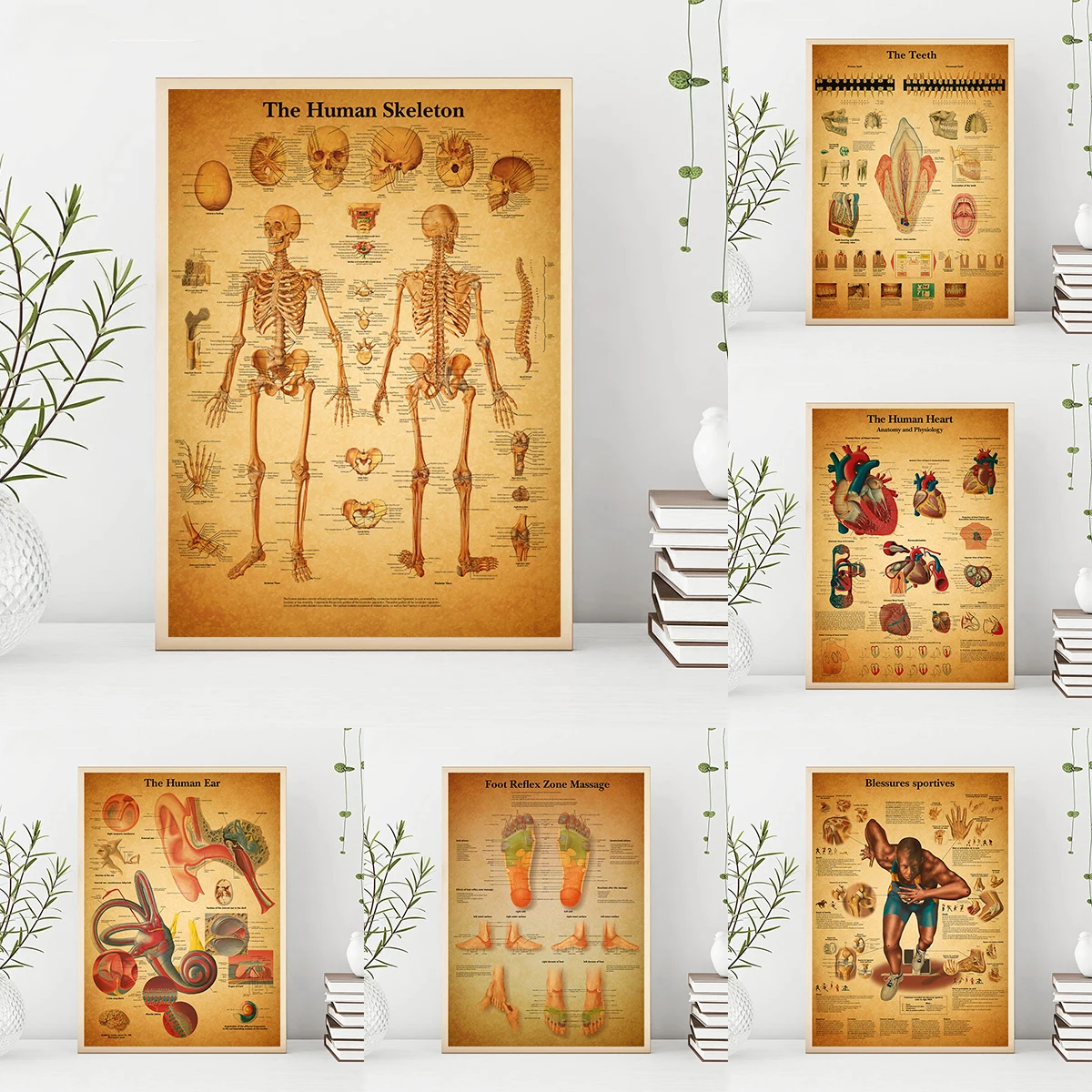 Живопись на холсте с анатомии человека, винтажные постеры для врачей, украшение для офиса, каркас, анатомическая структура тела, настенное искусство