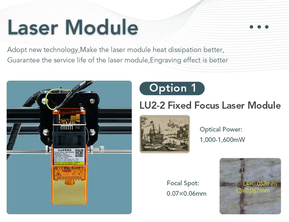 Бренд: OrturНомер модели: Laser Master 2/S2Тип: лазерная гравировальная машинаМатериал: алюминий + акрилМощность лазера: 7 Вт (электрическая мощность: 7 Вт, мощность света: 1200-1600 МВт), 15 Вт (электрическая мощность: 15 Вт, мощность света: 4000-4500 МВт), 20 Вт (электрическая мощность: 20 Вт, световая мощность: 5000-5500 МВт)Дальность достижения лазера: 445 ± 5 нмПитание: адаптер питания 12 В 3 А