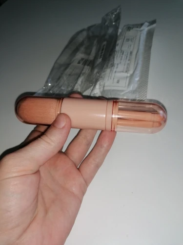 Миниатюрность и компактность изделия позволяет удобно хранить его или носить с собой. Ворс мягкий и приятный для кожи. Большая кисть удобно убирается обратно в "чехол", благодаря интересному механизму стержня. Продавец быстро отправил заказ, сам продукт очень красивый и эстетичный, спасибо!