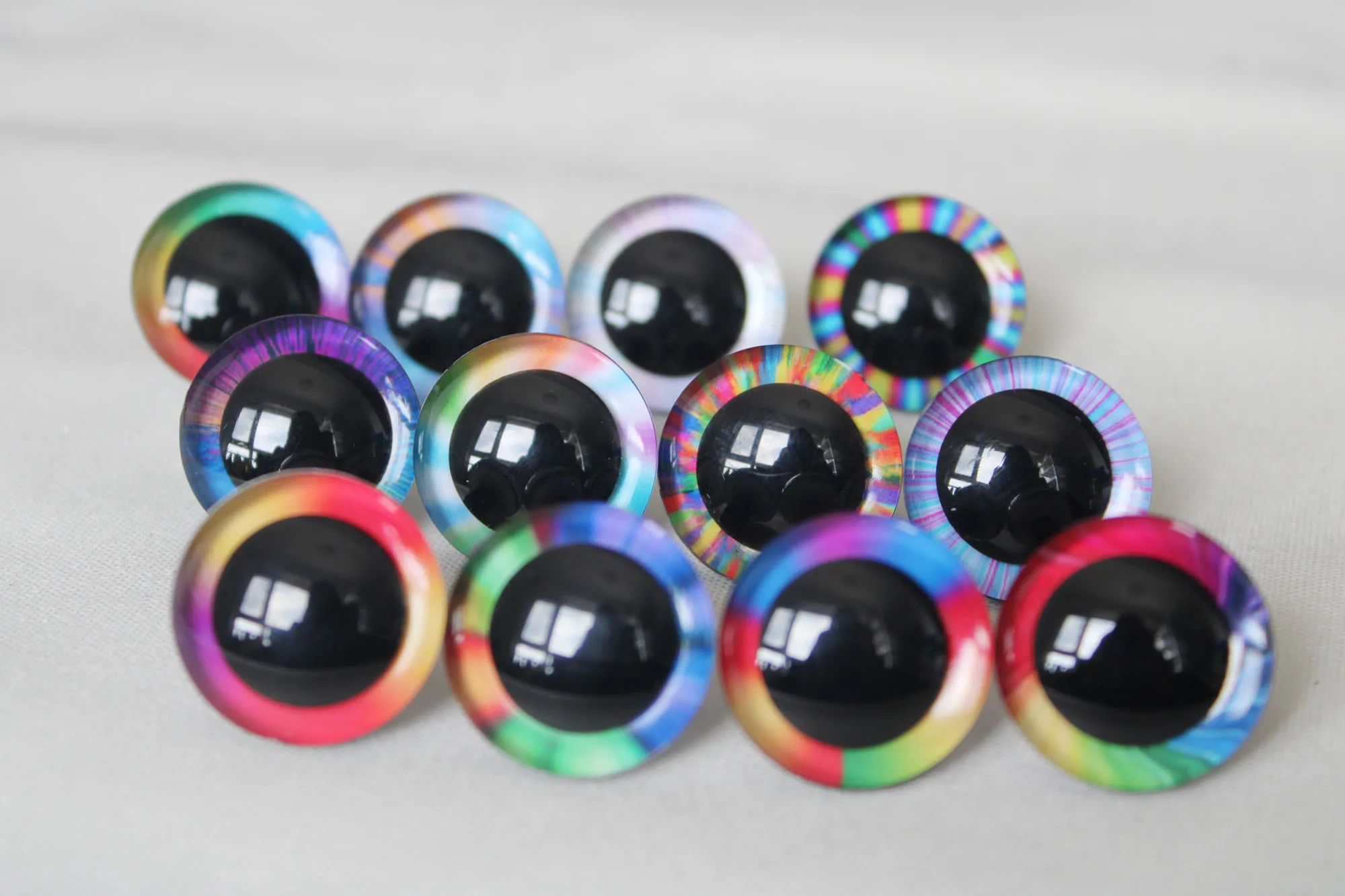 100 шт. 9 мм 12 мм 14 мм 16 мм 18 мм 20 мм 25 мм 30 мм 35 3D радужные цвета игрушечные безопасные глаза кукольные глаза + шайба для сделай сам плюшевые куклы -- R12