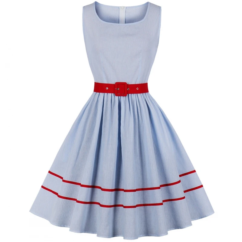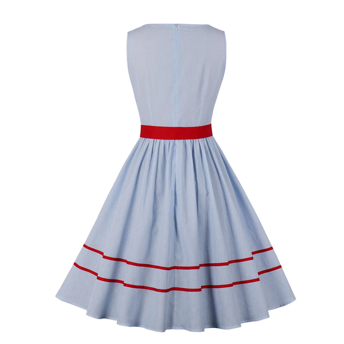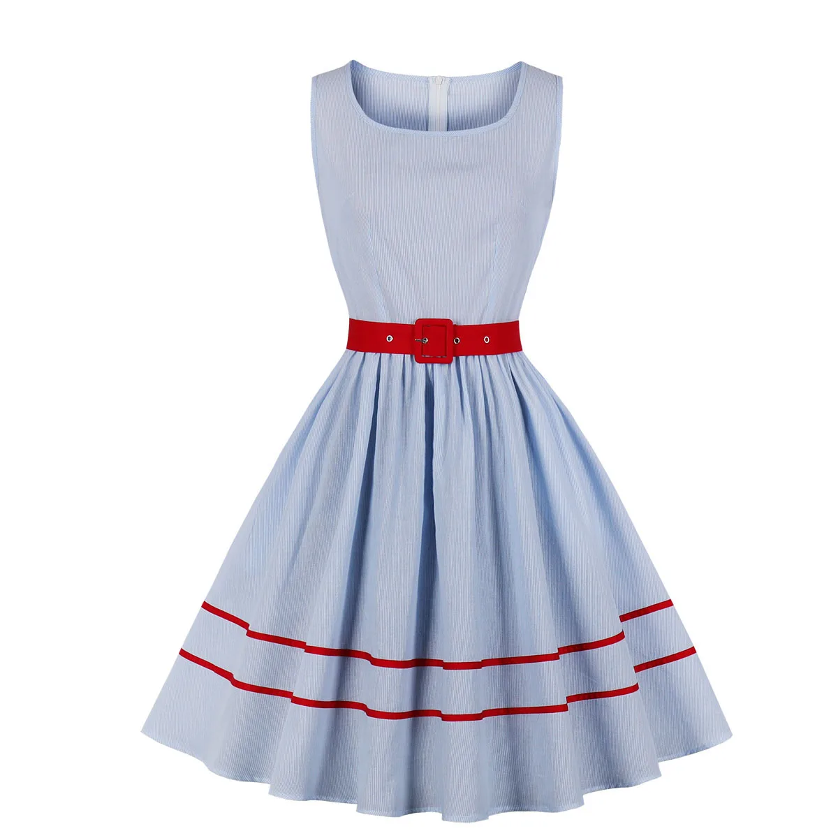 Женская летняя обувь в стиле пин-ап в полоску Повседневные Вечерние платья 2021 без рукавов юбка с высокой талией халат 50-х 60-х в винтажном стиле рокабилли свободное платье Vestidos