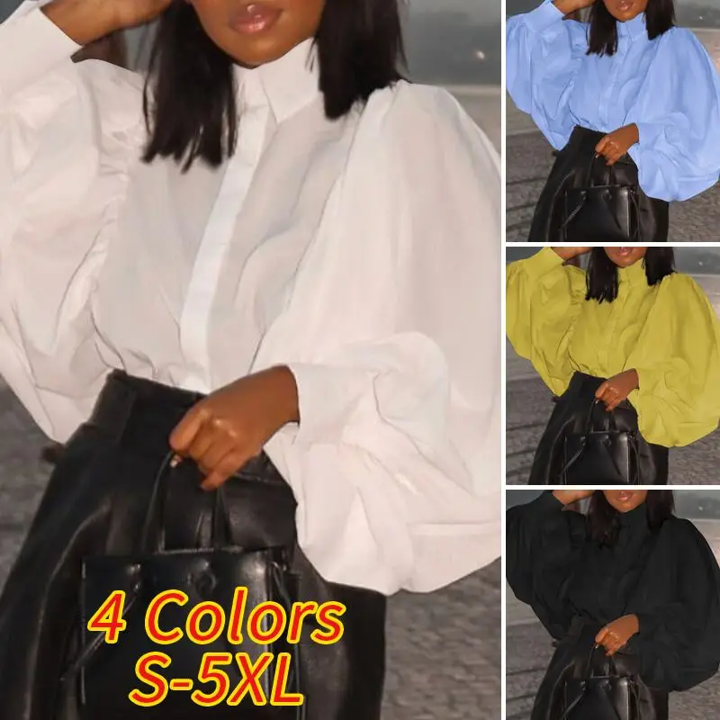 Женские белые рубашки VONDA, осень 2022, Повседневная Блузка с рука...