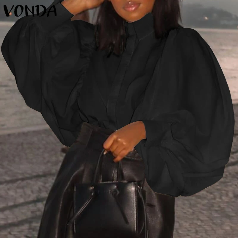 2022 VONDA осенние Рубашки, Повседневная плиссированная блузка с пы...