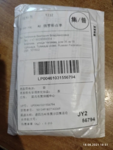 Страна: SK Material: redmi note 10s Color: 00453 Доставка: Cainiao Super Economy Global 26.08.2021