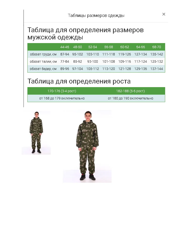 Страна: RU Color: КМФ Size: 56-58 (170-176 рост) Доставка: MyMall: Пункт выдачи в города 14.06.2021