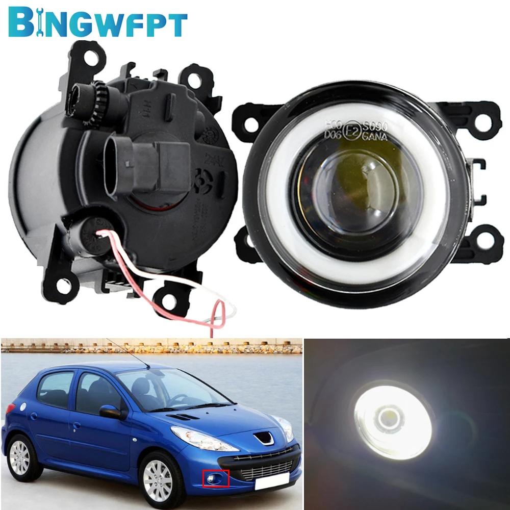 Противотуманные светильник ры BINGWFPT для Peugeot 206 + T3E 2009-2012, кабриолет Peugeot 207 CC H11, светодиодсветодиодный Противотуманные фары Angel Eye DRL 12 В в сборе