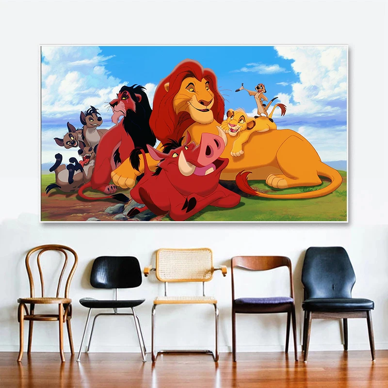 Картина по мотивам фильма Король Лев, холст картина, печатный плакат дюйма. Мультяшная картина семья настенное искусство детский подарок на день рождения