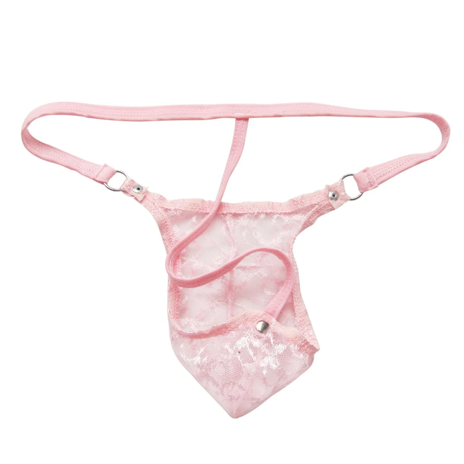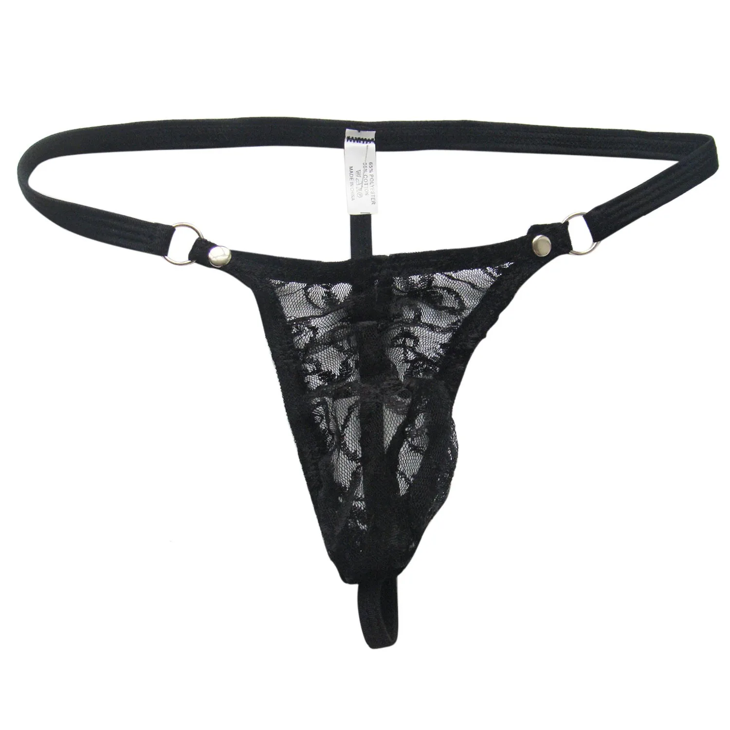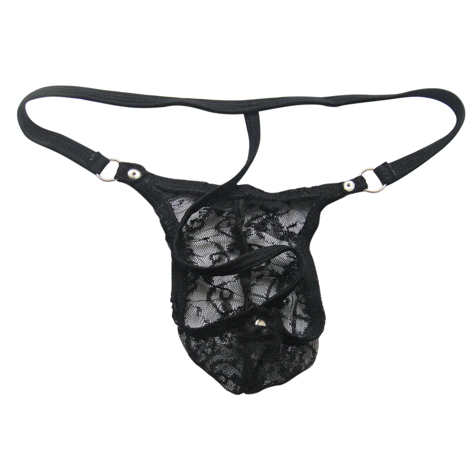 Трусы-стринги мужские, кружевные, прозрачные, с Т-образной спинкой, мужские бикини