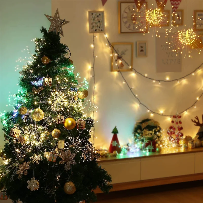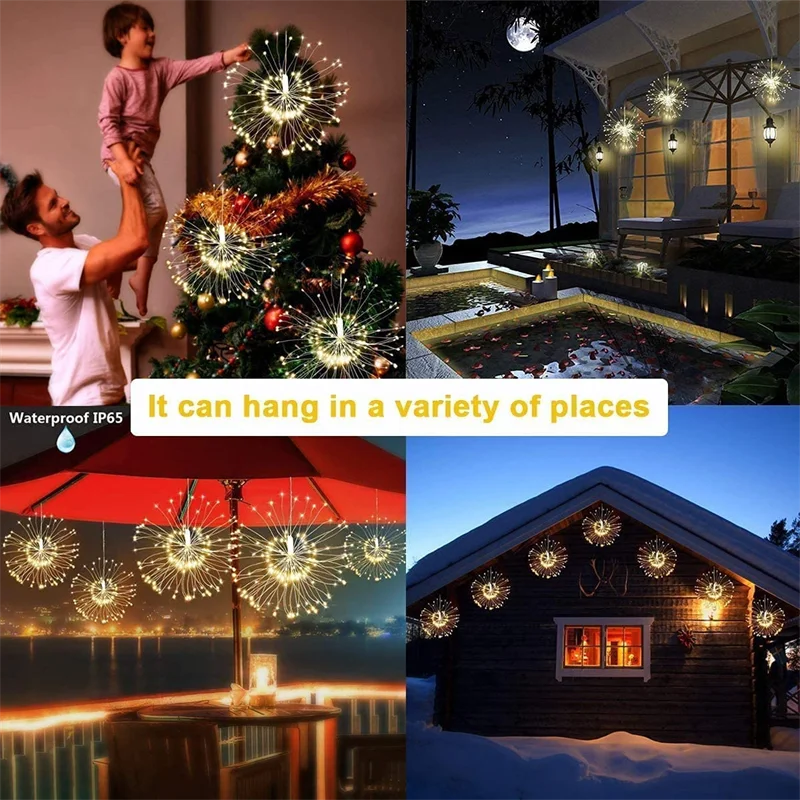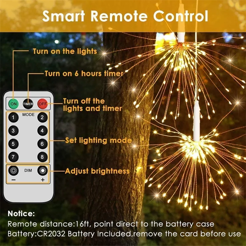 Фейерверсветильник s, светодиодная гирлянда, медная проволока Starburst, гирлянда s, 8 режимов, питание от батарейки, с дистанционным управлением, украшение на свадьбу и Рождество