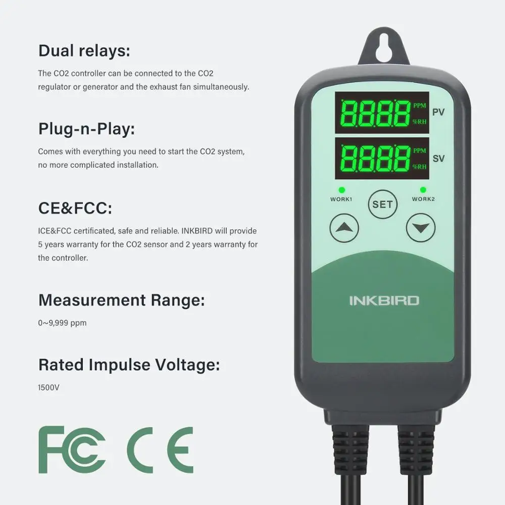 ICC-500T S01 программируемый углекислого газа Температура контроллер с NDIR CO2 Сенсор для комнатных растений с вентиляцией и отверстиями для вентиляции и кондиционирования оборудование