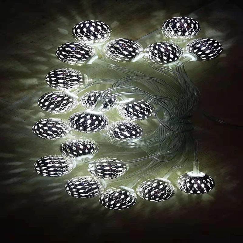 Описание:[Наименование товара]: Железный марокканский шаровой струнный светильник[Материал изделия]: Железный марокканский шар, светодиодный светильник[Цвет формы]: серебристый/блестящий[Светодиодный Цвет]: теплый белый/белый