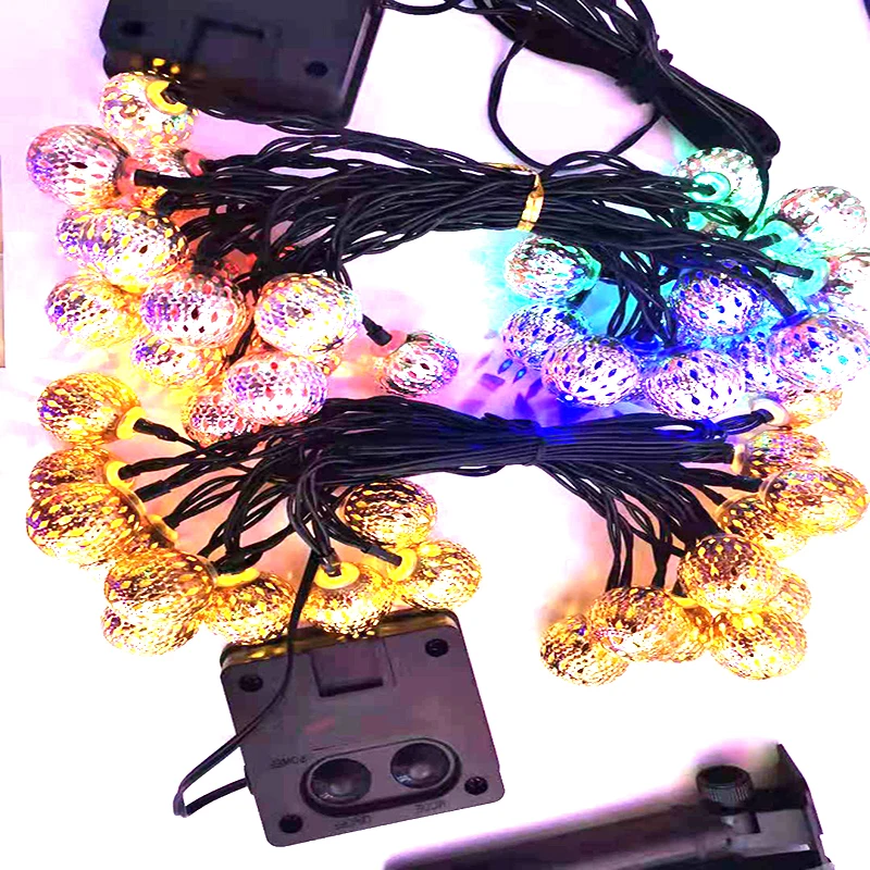 Солнечные лампы 5 м/10 м/20 м металлический марокканский шар Солнечная светодиодная гирлянда сказочные огни гирлянда Солнечная энергия Рождество для декора сада