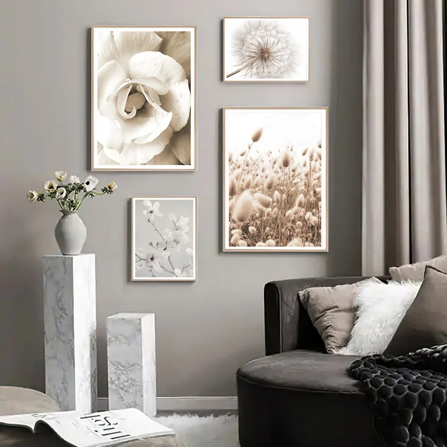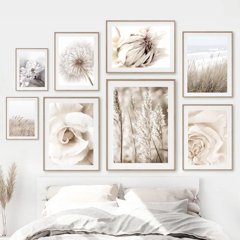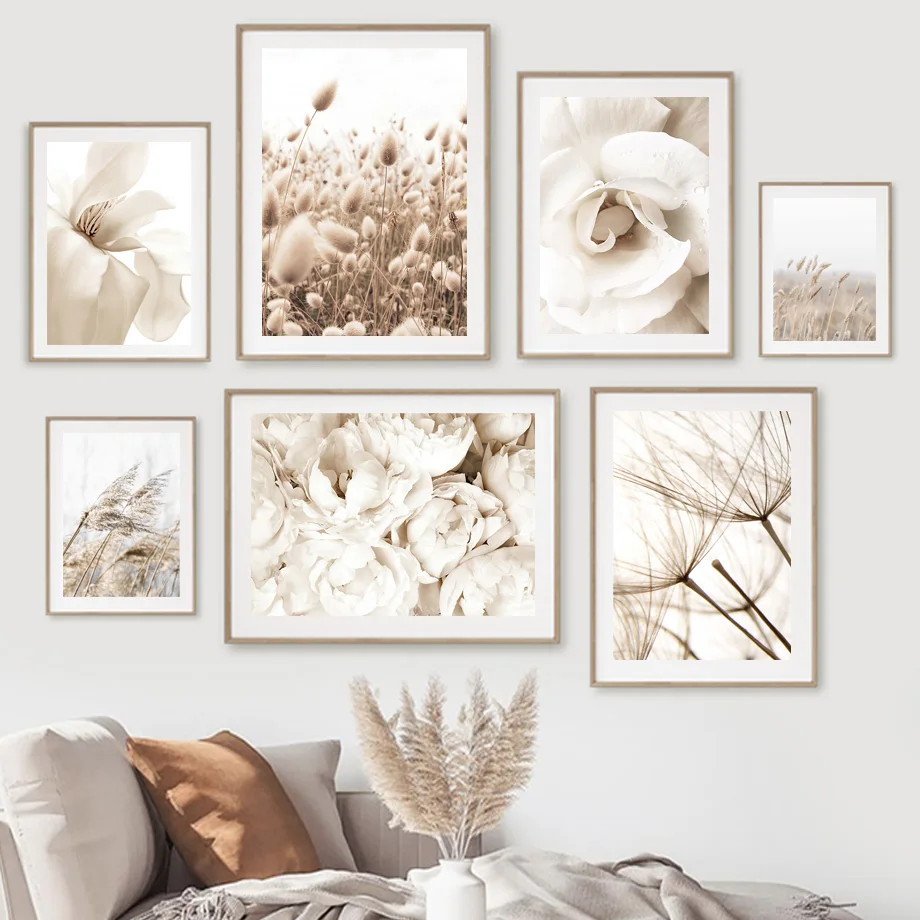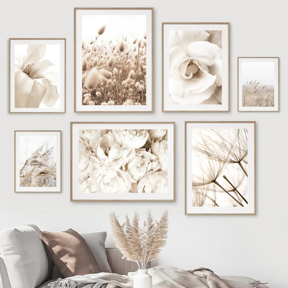 Белые цветы Роза Пион Одуванчик Рид настенный Арт холст живопись скандинавские плакаты и принты настенные картины для декора гостинойМатериал: экологически чистый хлопокХарактеристика: солнцезащитный, водонепроницаемый, никогда не выцветает