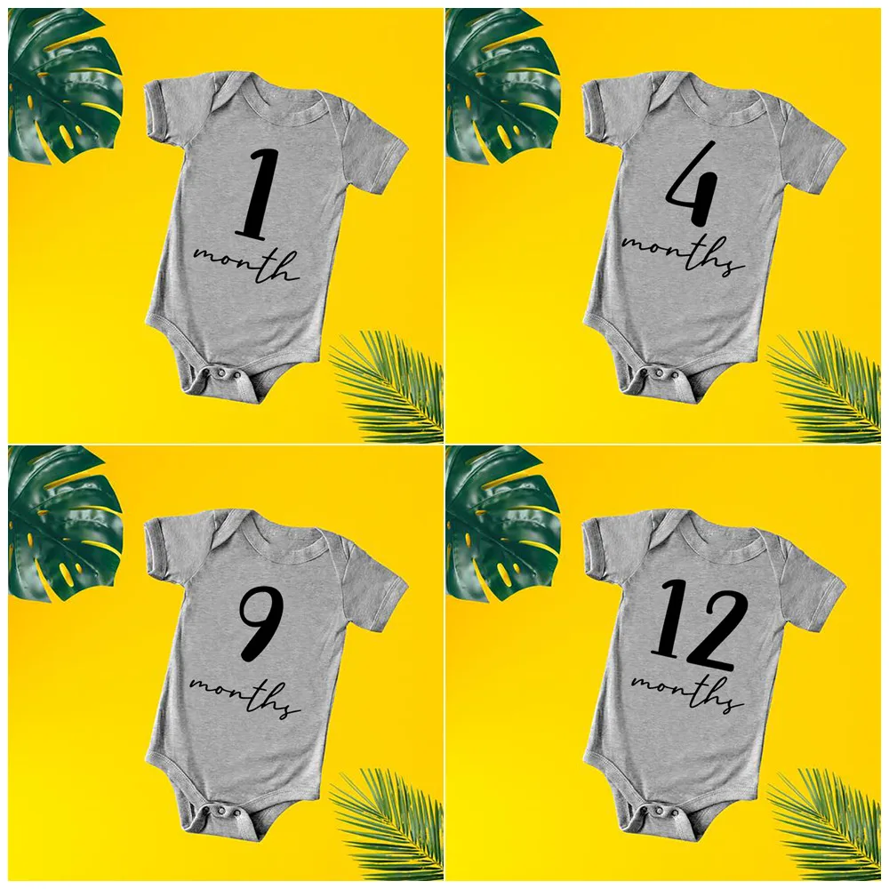 Детский комбинезон для новорожденных; Комбинезон унисекс для мальчиков и девочек; Детские боди с ежемесячным принтом; Повседневная одежда для младенцев