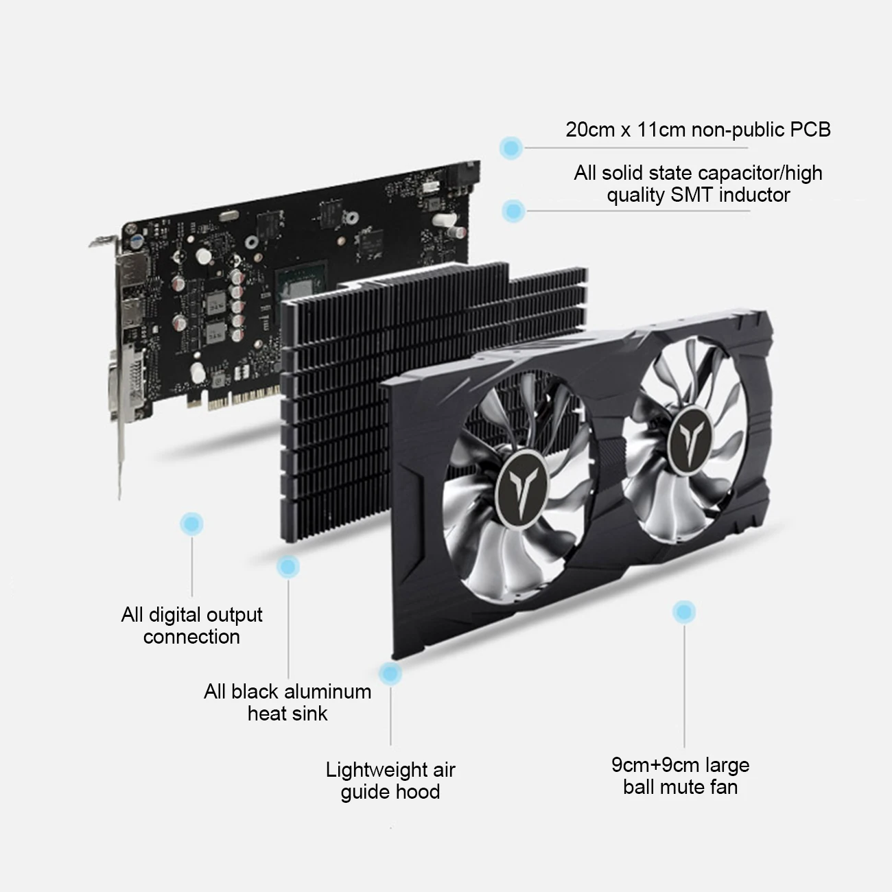 Особенности: 1. Динамическое Супер Разрешение (DSR)2. Глобальное освещение Voxel (VXGI)3. Двойные вентиляторы охлаждения бесшумны, устойчивы и долговечны;4. DP + hdmi-совместимый + DVI-D, 3 порта поддерживают 3 выхода экрана;5. Сверхпрочный 105 градусов высокотемпературный твердый конденсатор; Спецификация: Основные характеристики:Основной код и процесс: GP107/14nmЕдиный шейдер: 768Частота ядра: 1291/1392 МГцЧастота видеопамяти: 7000 МГцОбъем и характеристики памяти: 4 ГБ/128 бит/GDDR53D Особенности: DirectX 12 / DSR / GameStream / G-Sync / OpenGL 4,5/8KОсобенности ОС: Windows7/8/10Радиатор: YX5-48-XДругие характеристики: GPU Boost 2,0,Шина интерфейс: PCI-Express 3,0x16Выходной интерфейс: DVI-D + hdmi-совместимый + DPКонструкция источника питания: 3-фазная цепьКомплектация: 1 * карта дисплея