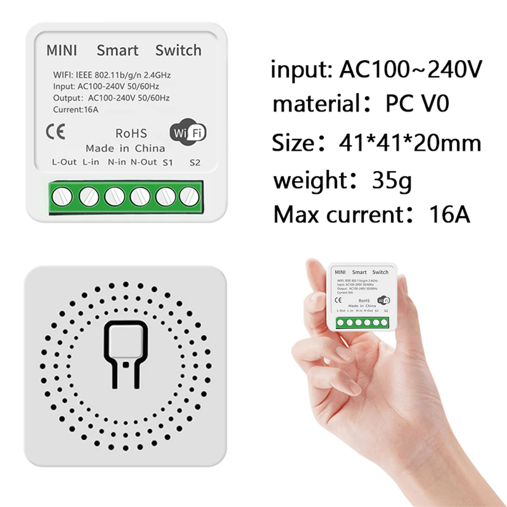Мини 16A 10A Tuya Smart Wifi переключатель поддерживает связь с 2-мя способ Управление Модуль светильник переключатель вклвыкл переключатель работы с Alexa Google Home приложение Smart Life