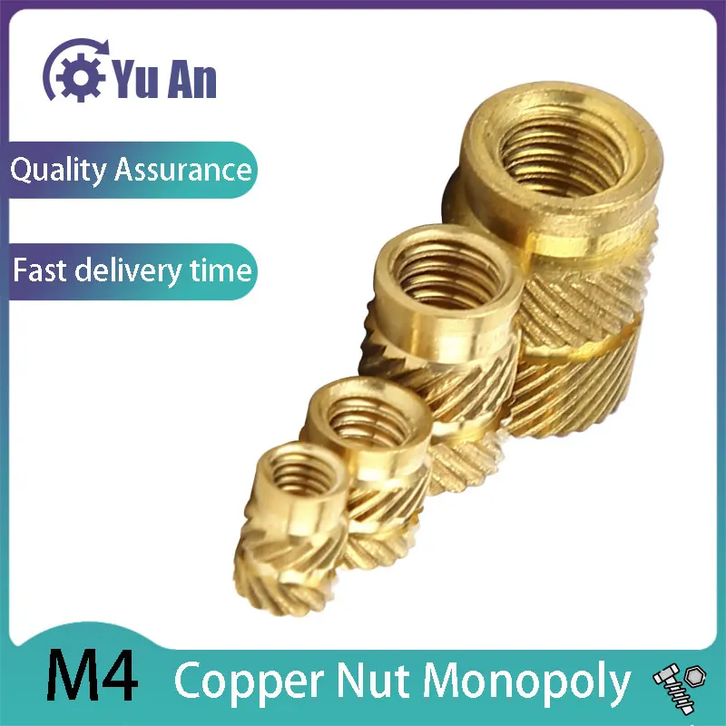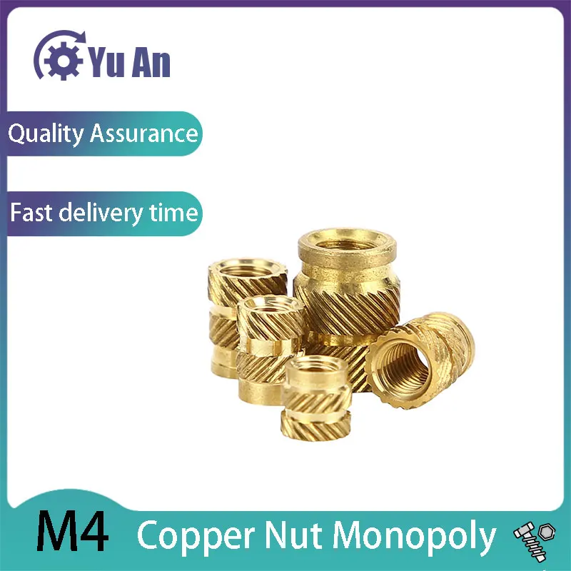 M4 инкрустированная Медная гайка горячего расплава, гайка для впрыска, зеркальная рифленая Латунная гайка литья под давлением, медная резьба инкрустированная гайка 50 шт.