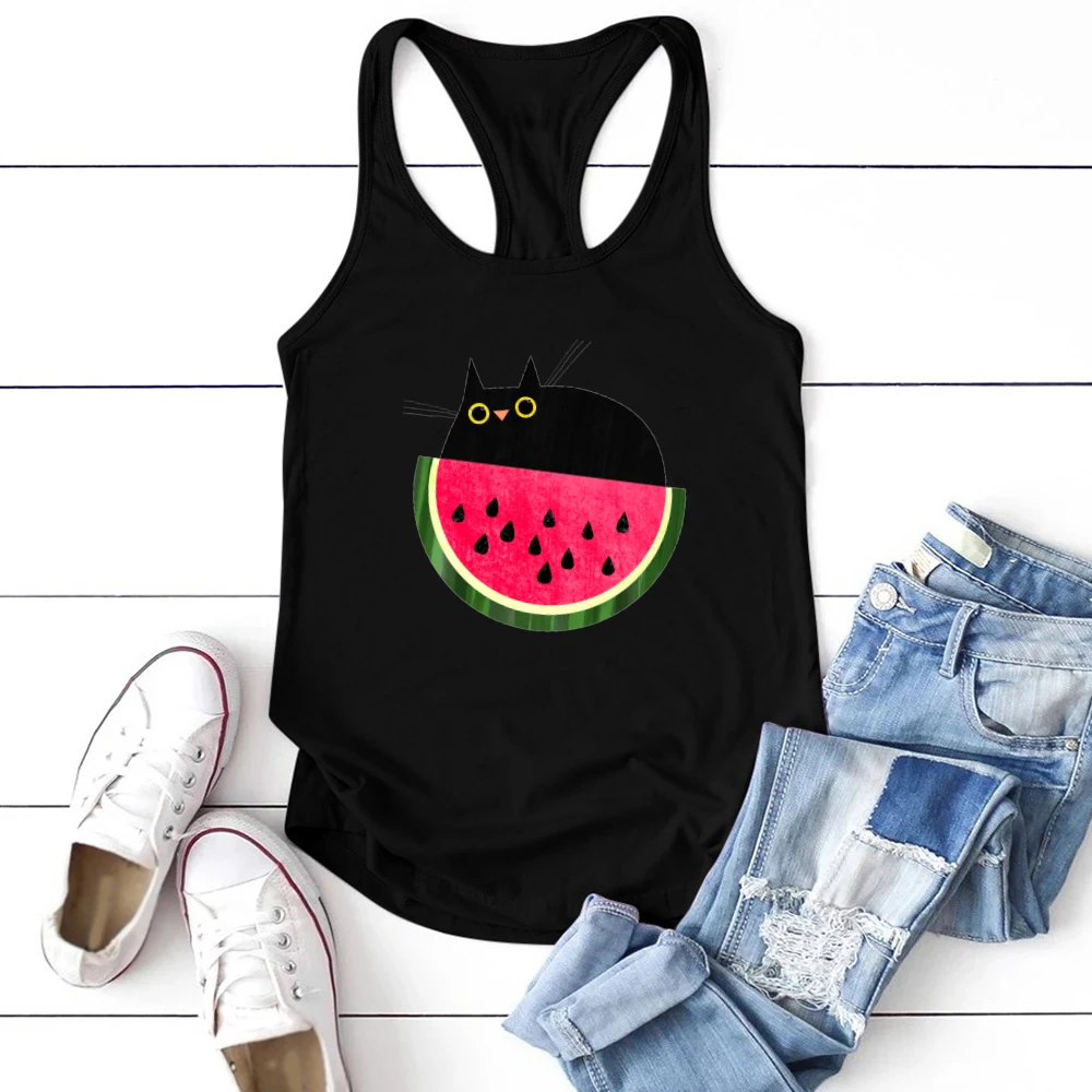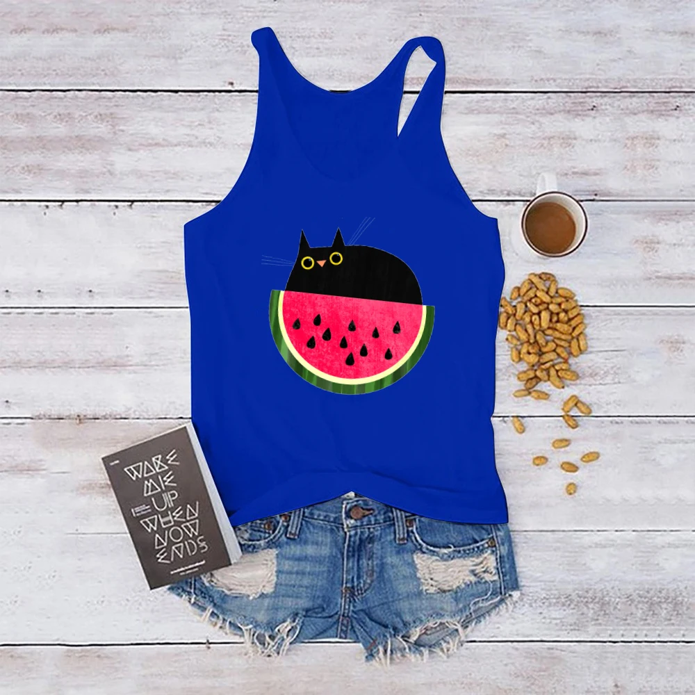 Новый 2021 забавный кот майки без рукавов с принтом без рукавов, майка-топ с круглым вырезом, милые, миленькие в японском стиле (Каваий майка летние свободные повседневные 90s женская одежда