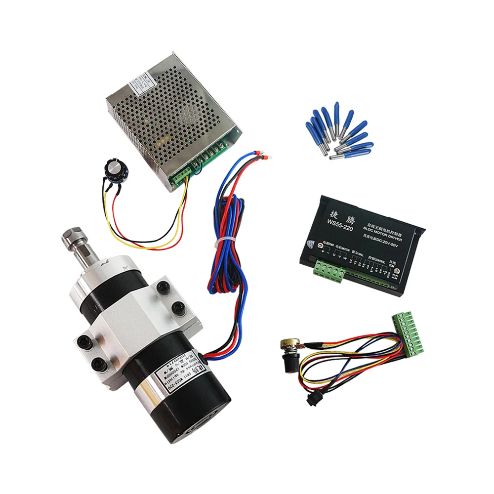 Бесщеточный шпиндель постоянного тока 500 Вт, фрезерный станок с ЧПУ, шпиндель с воздушным охлаждением, зажим 55 мм, Драйвер шагового двигателя, источник питания 3,175 мм, инструменты с ЧПУ