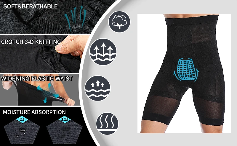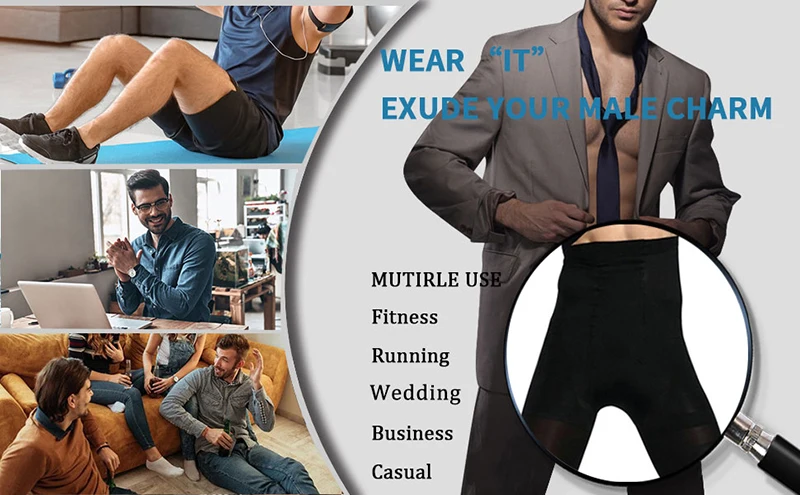 Мужской формирователь талии и живота был изготовлен из нейлона + спандекса, эластичной и легкой ткани, что делает его отличным для формирования тела, бесшовное нижнее белье с высокой талией может быть сопряжено с любой повседневной одеждой, уменьшение талии без обнаружения.