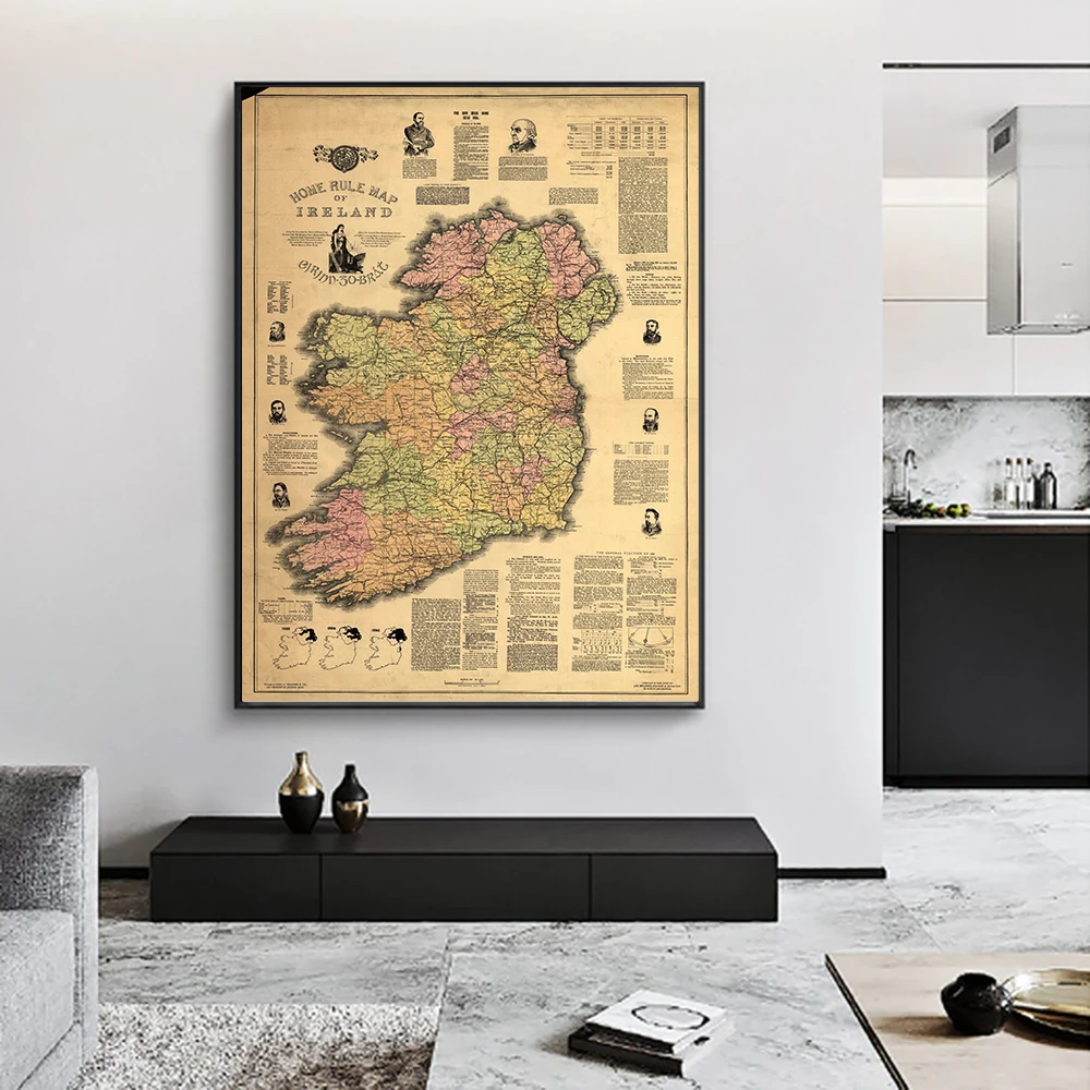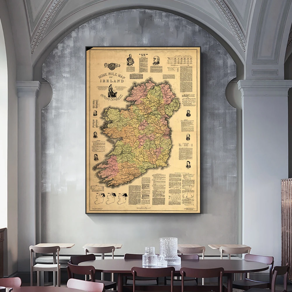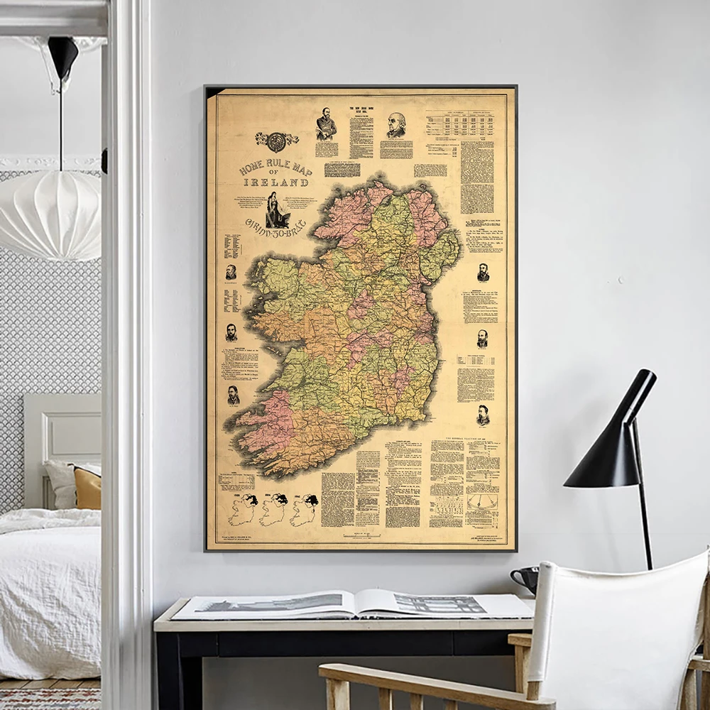 Винтажная картина маслом карта Ирландии, настенная живопись, декоративные картины для домашнего декора, без рамки