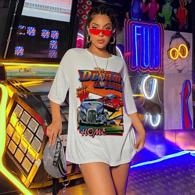 Женская футболка с принтом VIP HJN Dream Is True Racing Car, большая пляжная футболка в стиле ретро, Tumblr Ulzzang