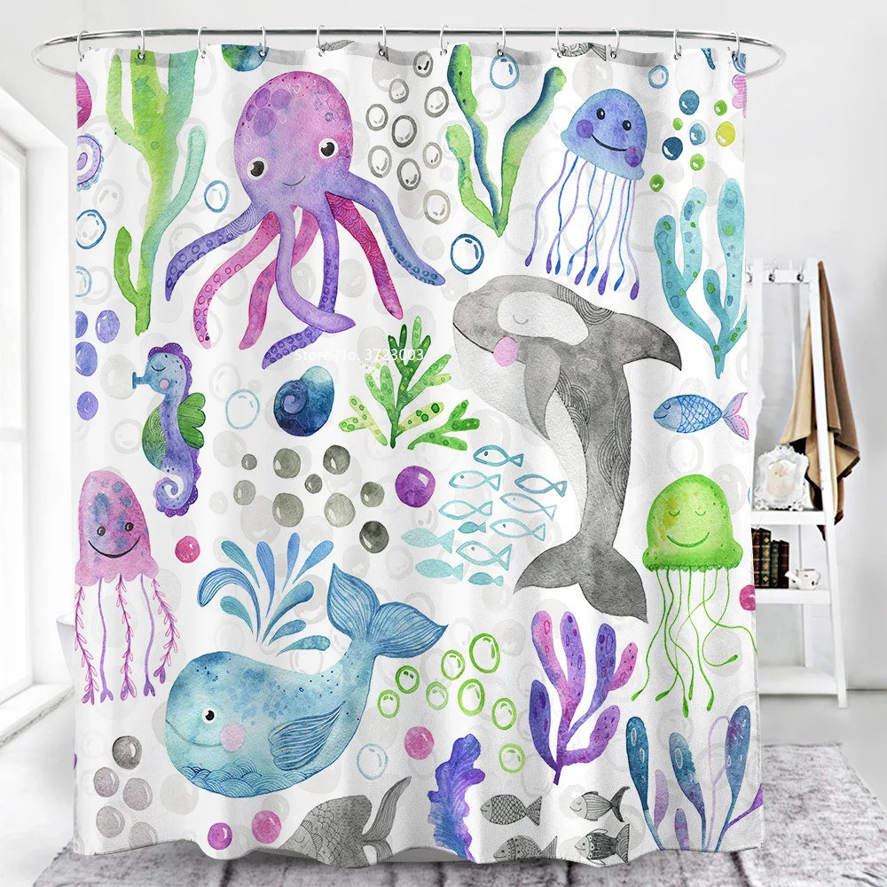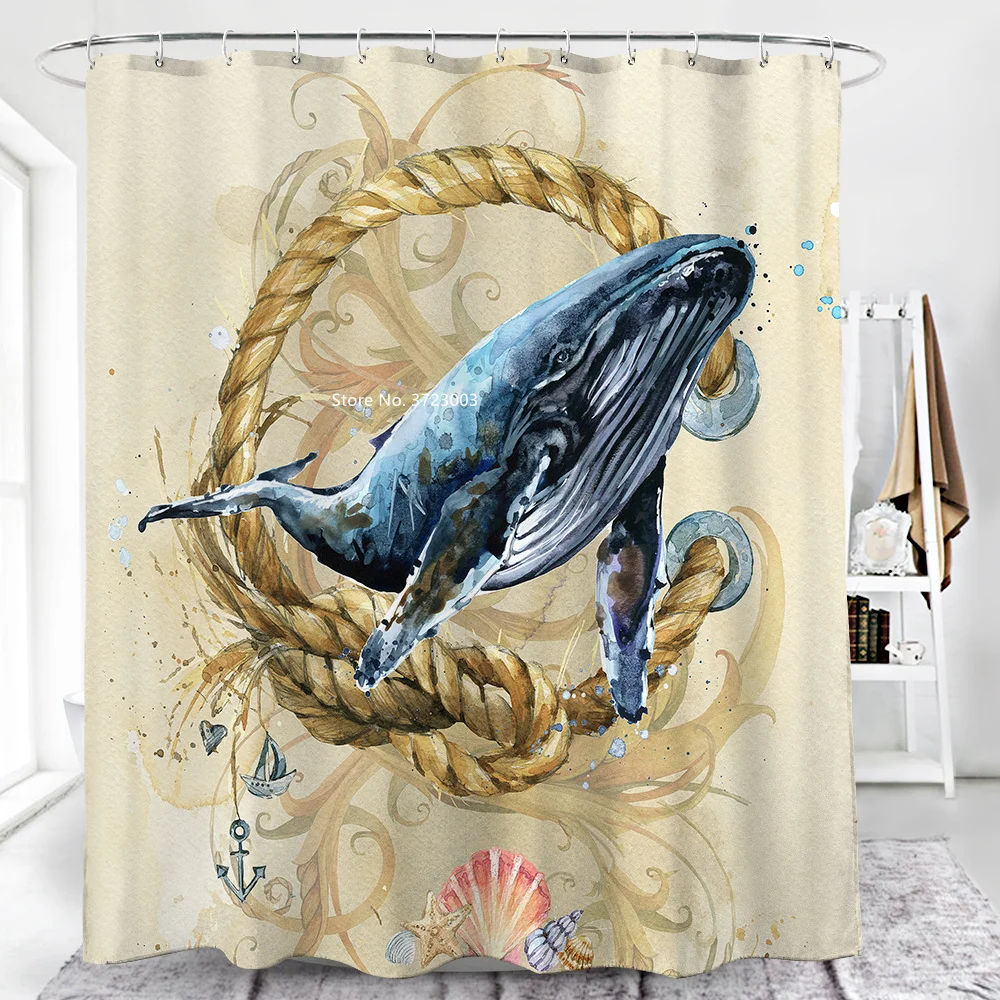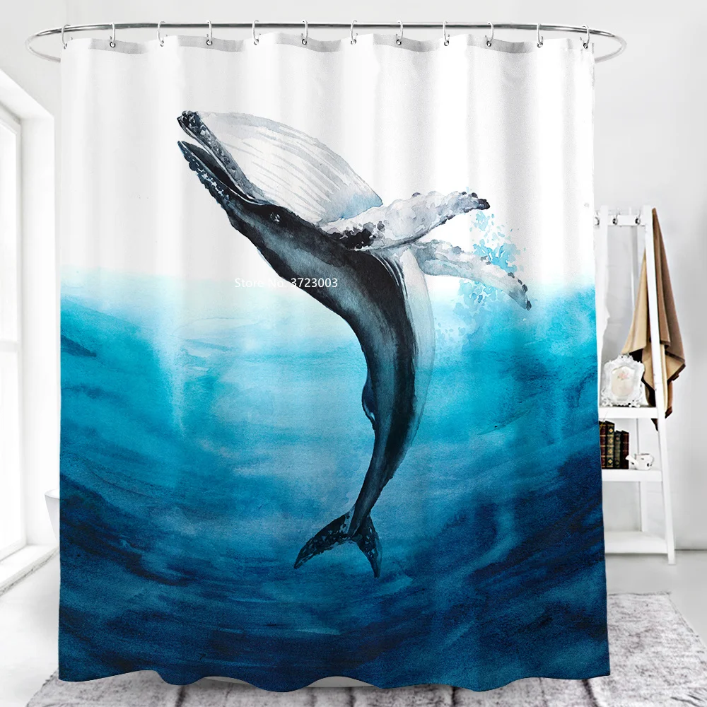 Водонепроницаемая занавеска для душа, 3d-занавеска для ванной из полиэстера с рисунком дельфина, акулы, Кита, черепахи, животных