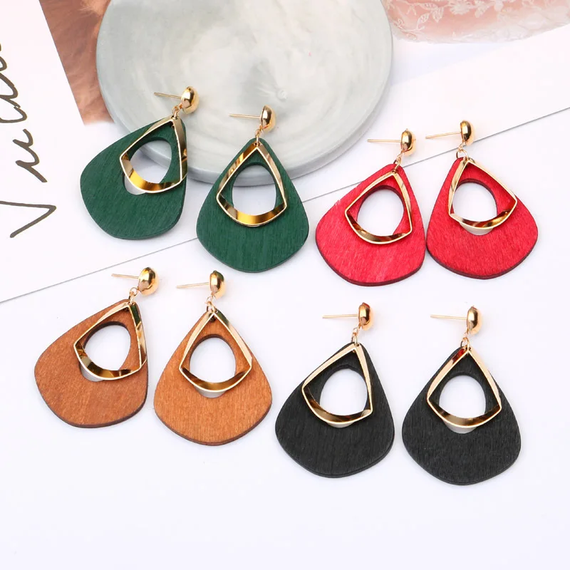 В богемном стиле деревянные серьги на крючках 2020 ювелирные издели...