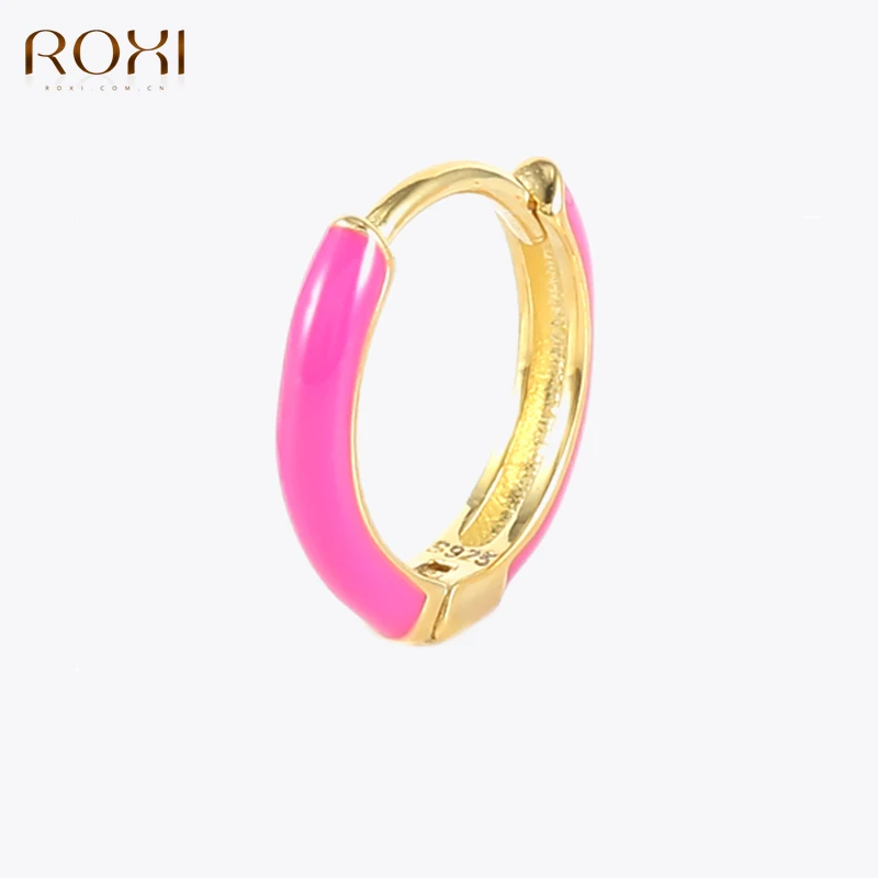 Женские серьги-кольца ROXI из серебра 925 пробы с эмалью, круглые серьги-кольца с капающей жидкостью, подарок на день рождения, свадьбу