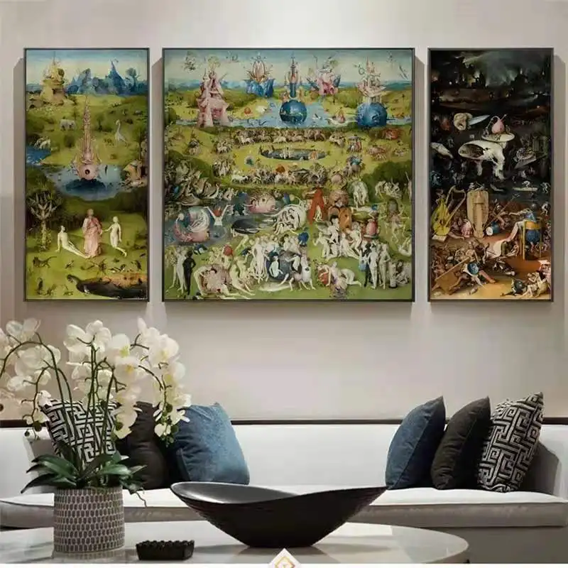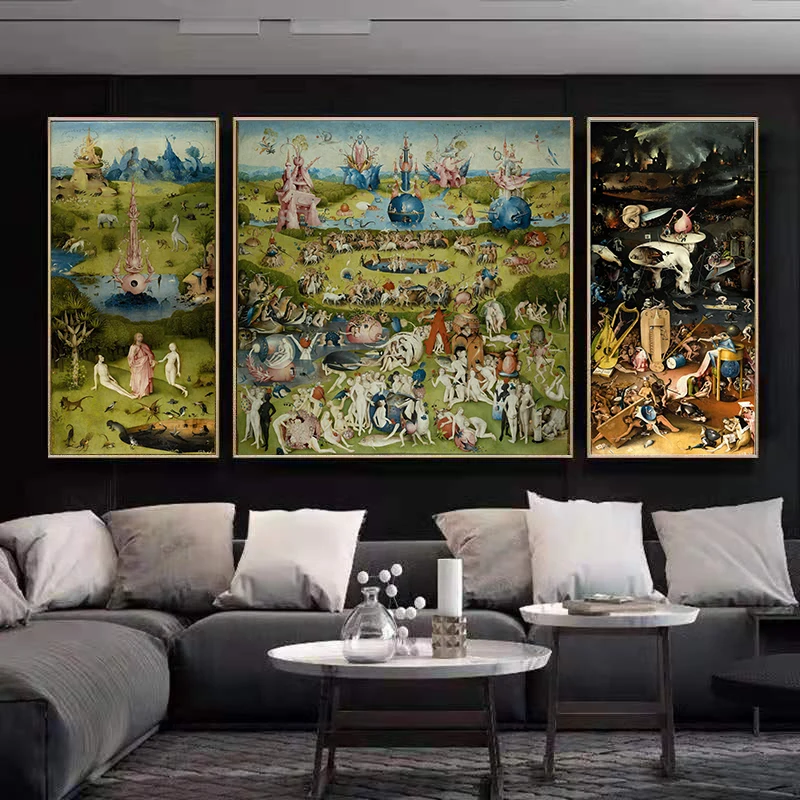 3 шт холст печать стены искусства-Иероним Бош известная картина маслом Сад земных прелестей Печать на холсте домашний декор