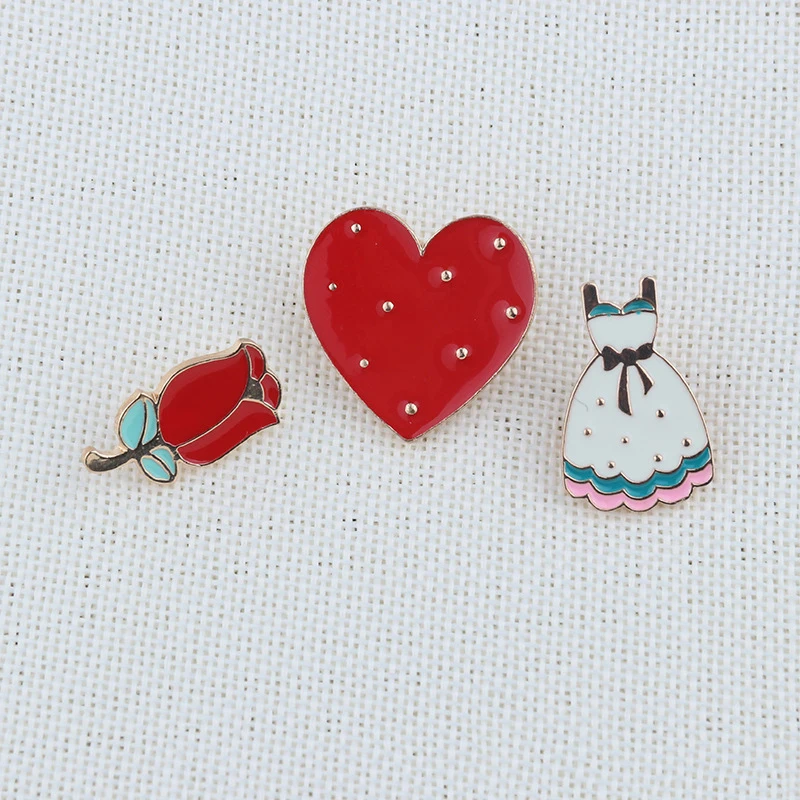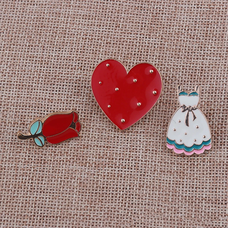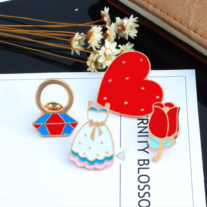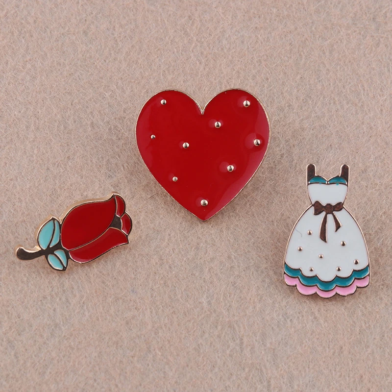 С принтом в виде героев мультиков и сердца, броши с розами Творческий юбка кольцо эмаль на булавке на изготовленние на заказ металлических значков с джинсовым воротником модное ювелирное изделие, подарок для влюбленных, для девочек
