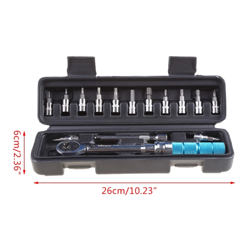 Профессиональный динамометрический ключ, 15 шт.компл., 14 дюйма, 2-15 Нм, набор инструментов для ремонта велосипеда, регулируемый ручной гаечный ключ, аксессуары